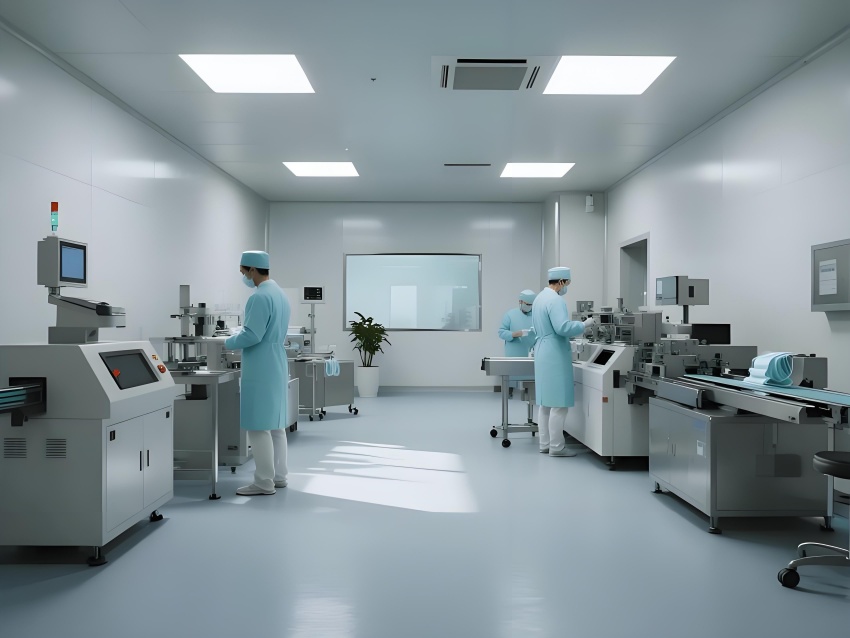 本潔凈車間設(shè)計采用現(xiàn)代工業(yè)極簡風(fēng)格,強調(diào)功能性與潔凈度。主色調(diào)選用淺灰藍(lán)(墻面)與純白(頂面)的搭配,營造冷靜專業(yè)的氛圍,局部用淡綠色做視覺緩沖。