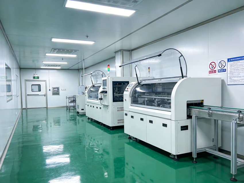 • 核心生產區針對 SMT 貼片、晶圓劃片等工位,優化了設備布局與動線設計,防靜電工作臺搭配伸縮式通風除塵管道,有效收集工藝粉塵并保障設備散熱;特種工藝區為真空爐、薄膜沉積等重型設備做了地面承重加固與專業管線預埋,適配高精密設備的安裝與運行需求。