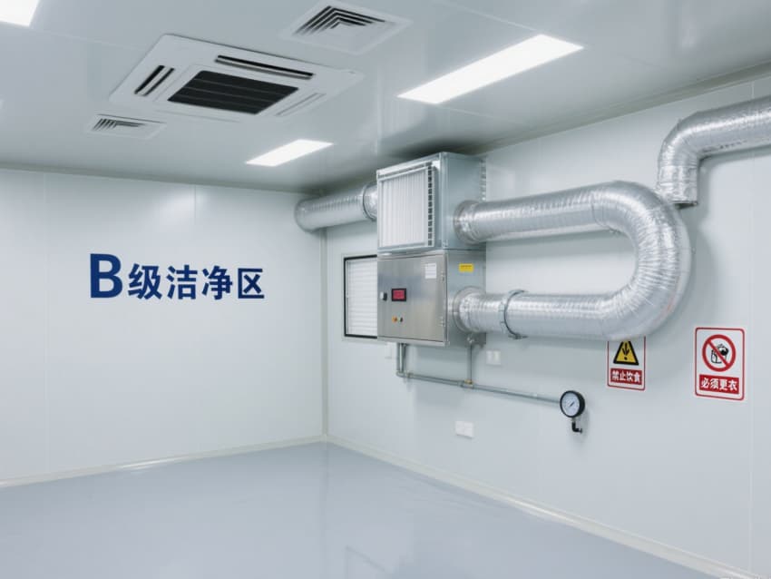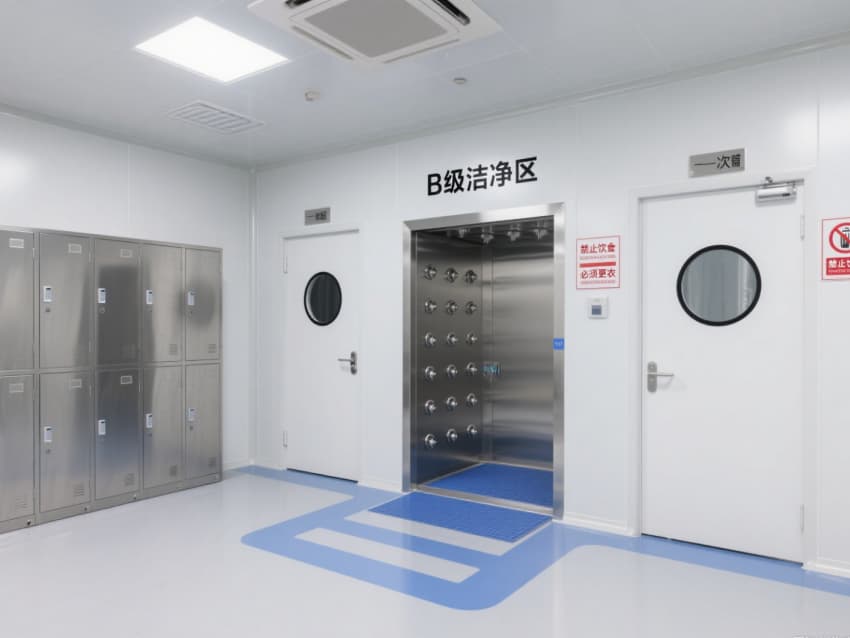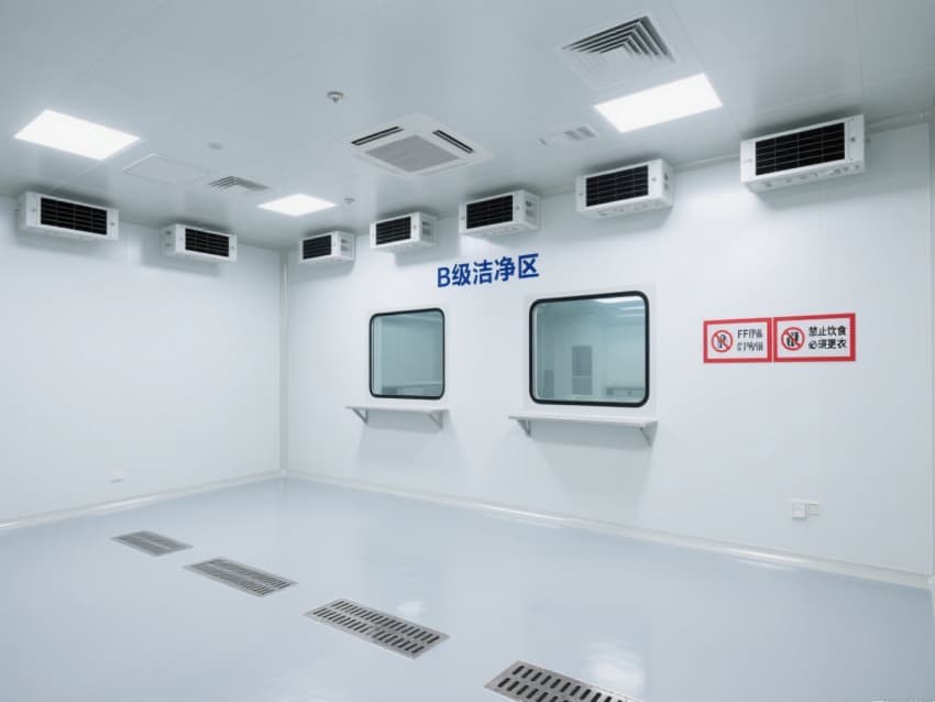 頂部嵌入式高效送風(fēng)口形成垂直層流,配合側(cè)下回風(fēng)系統(tǒng)實(shí)現(xiàn)每小時15-25次空氣置換,恒溫恒濕系統(tǒng)精準(zhǔn)控制溫度(18-26℃)、濕度(45-65%)。不銹鋼潔凈門窗與傳遞窗采用高氣密性密封結(jié)構(gòu),嵌入式LED潔凈燈提供≥300lux均勻照明,全方位營造安全、精準(zhǔn)的生物制藥生產(chǎn)基礎(chǔ)環(huán)境。