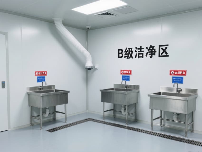 車間嚴(yán)格遵循萬級潔凈標(biāo)準(zhǔn),每立方米空氣中≥0.5μm微粒數(shù)≤35.2萬個、菌落數(shù)≤10個。白色抗菌彩鋼板搭建的墻體與吊頂,具備抗菌、耐腐蝕、易消毒特性,墻面與地面的圓弧過渡設(shè)計(jì)徹底消除衛(wèi)生死角;淺灰防靜電環(huán)氧地坪則通過防靜電處理,避免靜電干擾生物活性物質(zhì)。?