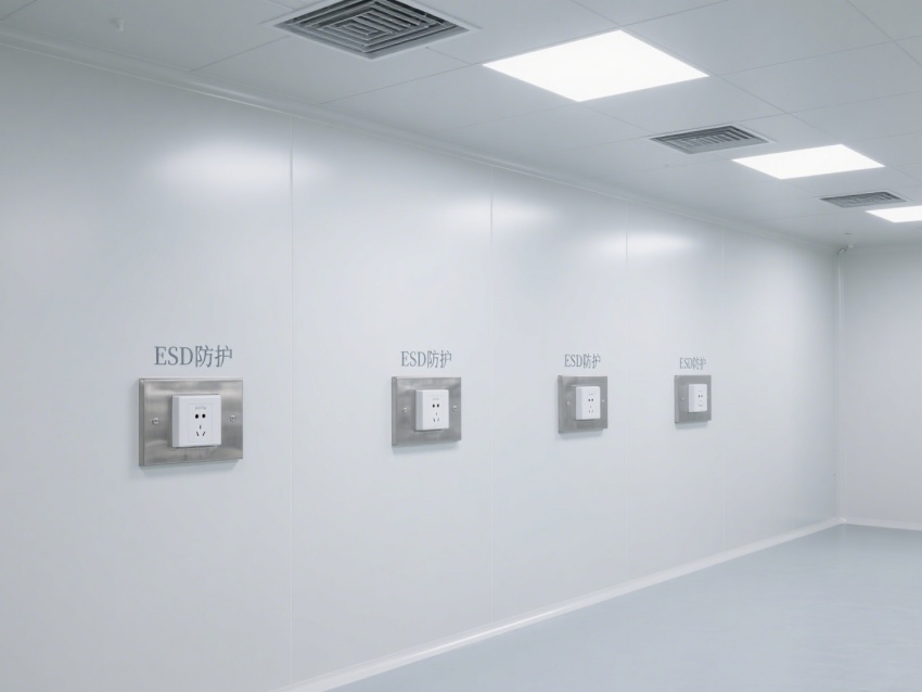 精準還原電子行業潔凈空間,白灰主色調貫穿整體,風格簡約專業且質感統一。淺白墻面搭配淺灰地面、金屬色設備接口線條,既符合電子車間低塵、抗靜電的核心需求,又通過色調層次避免空間單調,視覺上凸顯潔凈通透的特質。?