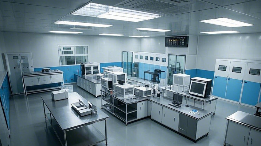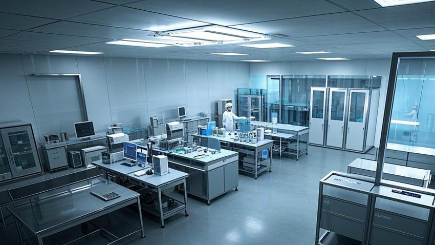 1000平方米電子無塵車間,現(xiàn)代科技風(fēng)格,干凈整潔,光線明亮。核心生產(chǎn)區(qū)占70%,輔助區(qū)占20%,辦公區(qū)占10%。核心生產(chǎn)區(qū):防靜電環(huán)氧地坪(淺灰色),白色彩鋼板墻面和天花板,垂直層流氣流,頂部高效過濾器(HEPA),不銹鋼工作臺(tái),設(shè)備排列整齊。輔助區(qū):更衣室(淺藍(lán)色墻面,衣柜和長凳),風(fēng)淋室(透明玻璃門,不銹鋼墻面),物料緩沖間(傳遞窗,白色墻面)。辦公區(qū):玻璃隔斷,現(xiàn)代簡約辦公桌,防靜電PVC地板(淺色),LED面板燈。整體色彩:白色、淺灰色、科技藍(lán)點(diǎn)綴。