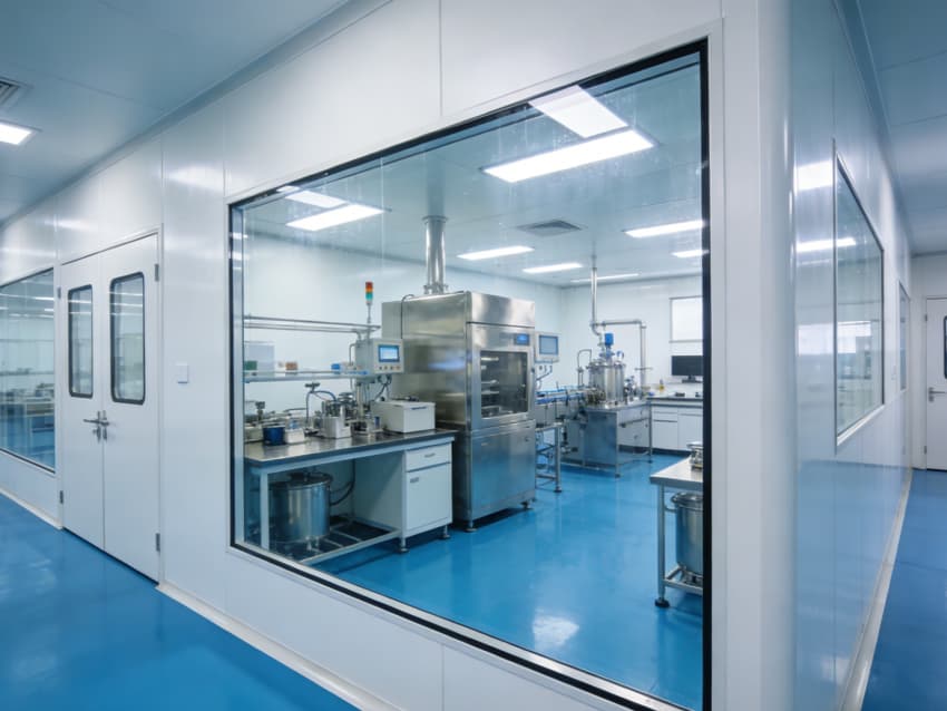 質檢與研發區:設置 PCR 實驗室、細胞鑒定室與穩定性考察區,采用負壓設計與生物安全柜,防止生物氣溶膠擴散;防震地面適配流式細胞儀、基因測序儀等精密檢測設備,保障數據精準性。