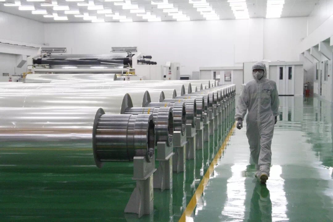 整個車間生產環境達到萬級(局部千級),配備有在線瑕疵檢測、化學除塵和靜電除塵等功能。產品主要應用于平板顯示領域的擴散膜、增亮膜、反射膜的基膜、各種保護膜及太陽能光伏背板膜等。