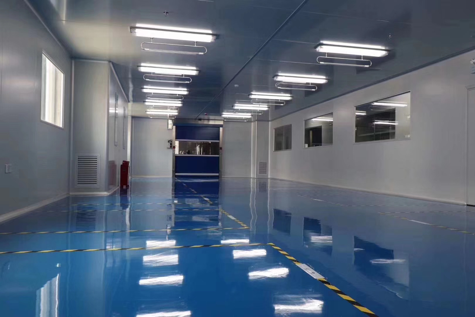 2、地面可采用環(huán)氧自流坪地坪或高級耐磨塑料地板,有防靜電要求的,可選用防靜電型